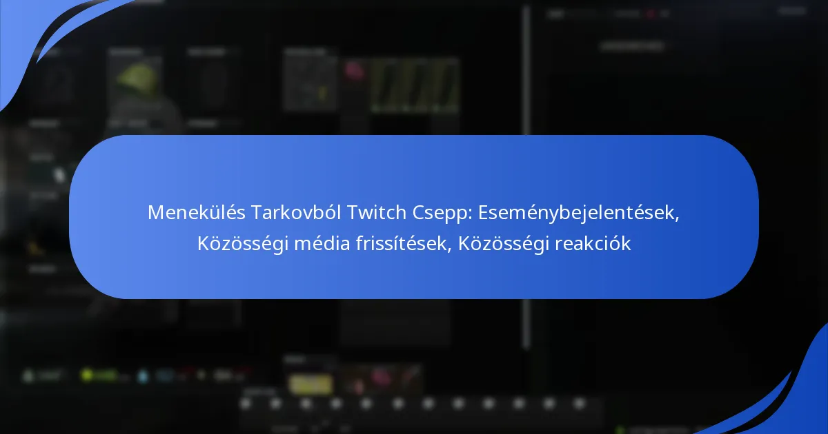 A legfrissebb bejelentések az Escape From Tarkov Twitch Dropsra egy sor közelgő eseményt emelnek ki, amelyek célja a közösség bevonása és a játékmeneti jutalmak gazdagítása. A játékosok különleges témákra, együttműködésekre és a jutalmazási struktúrák változásaira számíthatnak, amelyek célja az általános élmény javítása.