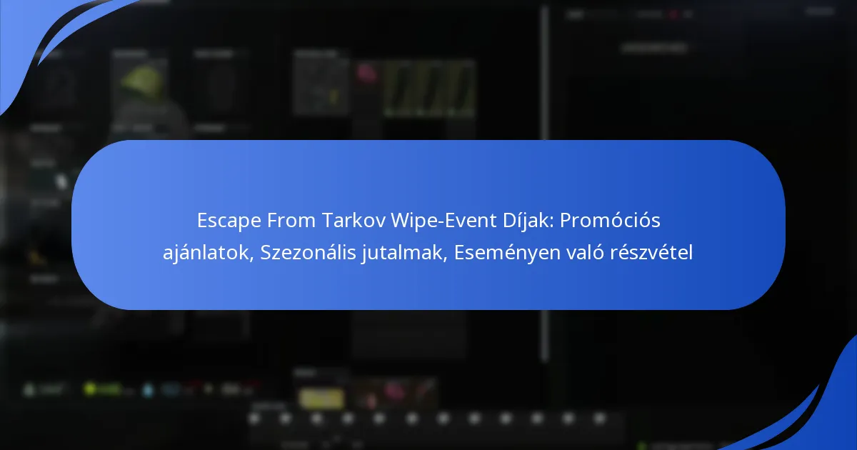 A wipe események alatt az Escape From Tarkovban a játékosok különféle promóciós ajánlatokat vehetnek igénybe, beleértve a kedvezményeket, szezonális bónuszokat és esemény-specifikus jutalmakat. Ezek a korlátozott ideig érvényes ajánlatok ösztönzőket nyújtanak a részvételhez és fokozzák az általános játékélményt.
